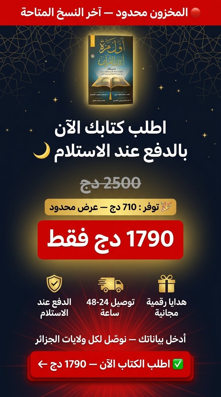 | :اختيار العرض | أول مرة اتدبر القرأن+5هديا مجانية 🎁ب1790 دج, اتدبر القرأن +اتلذذ بالدعاء +5 هديا مجانيا🎁 ب 2400 دج, اثنان اتدبر القرأن+5هديا مجانية 🎁ب3000 دج, ثلاثة اتدبر القرأن+5هديا مجانية🎁 ب 4200 دج |